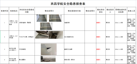 黄志秋一行就实验室、实训基地每个房间水、电、危化品等进行逐一检查。通过检查发现有如下安全隐患:一是501、502、516、517、518水管容易破损,有漏水安全隐患;二是部分房间自行牵拉插线板,存在用电安全隐患;三是个别房间存在卫生打扫不及时、房间凌乱等问题;四是创新创业实习基地房间吊顶脱落、墙体渗水情况。  为杜绝安全事故发生,黄志秋提出整改建议:一是加强对水、电、危化品等方面的定期检查,及时发现并消除隐患,防止事故发生;二是加强对实验实训室工作人员的培训和考核,提高安全意识和责任心,规范操作和管理;三是加强对实验和实训的监督和指导,教育和引导学生遵守规则和纪律,正确使用和处理水、电、危化品等,培养学生的安全素养和实践能力;四是加强与教务处、保卫处等沟通与协调,及时反馈安全排查情况和需求,争取更多的支持和帮助,提升实验室和实训基地的建设和发展水平。