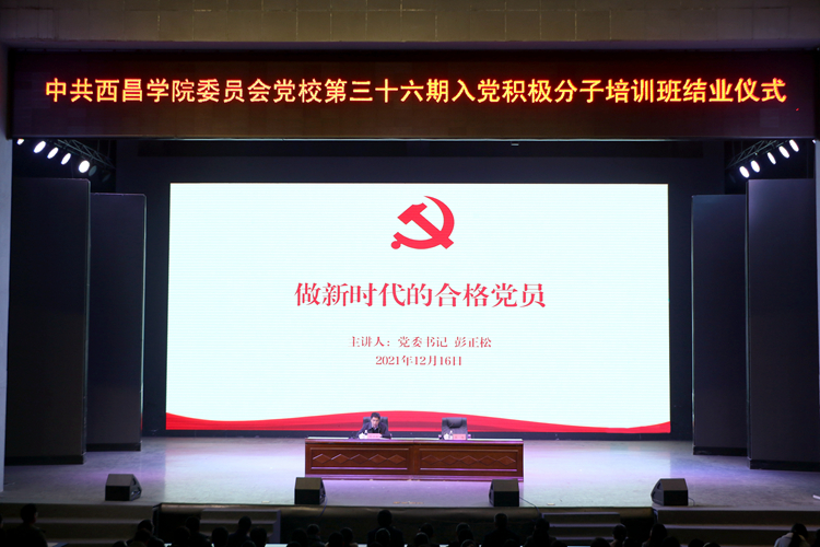 12月16日晚,中共西昌学院委员会党校第三十六期入党积极分子培训班结业仪式在北校区学生活动中心举行。党委书记彭正松,党委常委、副校长张炜,党建办负责人,各二级单位党委书记、副书记,学生党支部书记参加结业仪式。结业仪式由张炜主持。